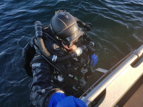 En af årets første dage blev, efter meget skriveri på mailen, til iskold dykning i Østersøen med Bonita og Ares som mål.