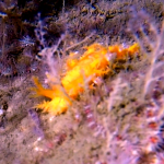Lillebælt og DSF-repmøde d. 18. april 2010 DSF-repmøde 2010 skulle afholdes i Middelfart, og vi, dvs. Manley, Nicolai og undertegnede, kunne jo lige så godt gør en dyd af nødvendighed og nappe et dyk før mødet så var vi da helt sikre på at de aktive dykkere også blev repræsenteret, selv om vi nok ikke ville gøre en forskel. Manley havde lavet en løs aftale med et par gutter fra Cousteau i Horsens, og da vi nåede frem til Kongebrogården kl. 7:15, var de næsten klar til at gå i vandet. Vi andre fulgte efter og i vanlig havbassestil fik vi lavet 3 hold. Lillebælt viste stor biodiversitet, som sædvanligt. Først blæretang på det laveste, så masser af bølgende sukkertang og lidt dybere var der andre brun- og rødalger og masser af forskellige svampe. Sigten var 4-5 meter på det lave og lidt mindre på det dybe. Overalt var der konksnegle, der havde travlt med at lave flere konksnegle, masser af muslinger af forskellige arter og mange anemoner.