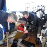 Korsør og DSF-Repmøde En pragtfuld forårsdag og der var invitationer fra højre og venstre om dykkerture til det meste af Sydskandinavien, men vi havde jo en aftale i Korsør og derved blev det! Vi havde i den anledning også skaffet os lidt information om, hvor vi kunne komme i vandet før Rep-mødet, men vi havde dog ikke læst godt nok på lektien og endte med at dykke i bunden af den gamle færgehavn eller noget der lignede i hvert fald. Det startede med at min flaske var tom. Da jeg fik sat automaterne på var ikke det mindste tryk på flasken og jeg var på nippet til at stå over, men Hans kom og havde heldigvis(?) en ekstra flaske med. Nicolai og Manley var på det tidspunkt hoppet i vandet, og Hans og jeg hastede i efter dem, for vi skulle jo gerne nå frem til kaffen inden mødet. Og dykket? Tja det bedste man kan sige om det er, at det var kort! Sigten var mellem en halv og en hel meter, og der var ikke andet end affald at se på.