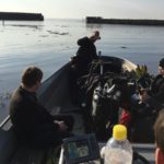En tæt på beretning (men ikke så tæt på som de andre) Et hurtigt kig på vejrudsigten fredag eftermiddag og idéen var født, en lang dykkertur mandag var mulig. Det er jo lidt svært at skaffe folk på hverdage, især med dags varsel og når så mange kun prioriterer dykning som nummer 2 eller 3. Men ovre i Lund har vi fundet en ny legekammerat og Johan takkede straks ja. Ankommet i garagen, diskuterede vi dykkemål, benzinregnskab og påfyldning i én pærevælling, mens Henrik fyldte på fra dunke. Lige da samtalen faldt på et vrag af stor interesse for Henrik, bøvsede tanken og samtalen fortsatte omkring vraget, mens han pakkede slange og dunk væk. På med krogen og ned til Johan som ventede i Smygehamn, pakke båd som så ofte før og så af sted. Vi nåede dog lige at hilse på Flemming, som var nået frem før Havgassen og de andre, som skulle på Undine. Efter at have sejlet i ca. 45 minutter, eller 2/3 af de godt 30 sømil til vraget, faldt mine øjne på én af bådens mange målere. 78 liter, stod der. Jeg spurgte Henrik, om der var 78 liter tilbage, eller om vi havde brugt 78 liter allerede. Henrik stivnede og blev underlig i blikket, imens han trykkede adskillige gange på knapperne, så displayet viste forskellig data. Hmmm, jeg tror der er 75 liter tilbage (alt imens han undersøgte sagen havde vi brugt 3 liter), sagde han og tog gassen lidt af. Vi kiggede nu på hinanden og blev enig om, at vi ikke havde tanket efter en tur på Undine ugen før og at der derfor burde være fyldt meget mere på tanken, end de 25 liter, inden den havde bøvset som om den var fuld. ØV!