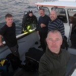Årets første tur i Østersøen Så blev det endelig vejr til en tur i Østersøen, efter en laaaang vinter. Vi mødtes i Kastrup vanen tro: Asger, Henrik, Rune og jeg, fulde af forventning og gåpåmod, båden var tanket og trods morgenkulden, var vi nu endelig på vej. En lille time efter, stod vi og lavede kuskeslag på havnen i Ystad. Temperaturen har ikke helt fulgt kalenderen og i kun 5 – 6 grader celsius pakkede vi båden, efter at have stået i kø ved havnens eneste toilet, med det halve af Sveriges jægerkorps, som var på øvelse. Godt klædt på forlod vi nu havnen, med kurs mod det ukendte, som en anden dykkerekspedition. Jeg havde et par dage forinden læst på No Diving Limits hjemmeside, at de var nødt til at afbryde en ekspedition i Køge Bugt, fordi de var ved at løbe tør for brændstof(ja i Køge Bugt ;-)). Det måtte ikke ske for os, så vi havde tanket båden helt op, med tanke på, at det formentligt er logistiske forhindringer som gør, at de ikke for længst har fundet og bjærget Hans Hedtoft. Nå, men efter at have ledt i 15 20 minutter på første position, som lå bare 5 sømil ret syd, måtte vi erkende at det ikke altid er så let. Andet vrag måtte også opgives, efter en lille halv time, der var simpelthen ingenting ikke engang sten. Nu havde tilliden til mine positioner lidt et knæk og var det ikke de rareste mennesker jeg var i båd med, havde de måske straffet mig og med god grund. Jeg fik en chance mere, måske fordi det var fuldstændigt stille og kulden derfor ikke føltes så slem, enedes vi om at sejle yderligere 4 sømil mod sydsydvest.