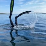 Fakta: Det er tilladt at undervandsjage i Danmark om natten med lygte, men uden brug af projektlignende genstande såsom harpun. Vi brugte kniv og fiskelasso.