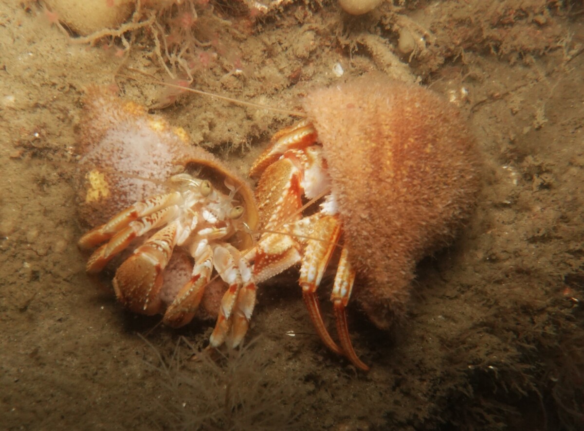 På vraget var der en del eremitkrebs men ellers var sigten demotiverende, så der blev ikke set ret meget af dyrelivet. Bunden omkring vraget vidner om en del strøm, hårdt hvidt sand og næsten ikke noget mudder i vraget, så det var ikke derfor sigten var som den var. Jeg fik gjort fri og kunne fornemme strømmen hele vejen op, hvor båden blev flyttet i overfladen mens jeg var drivanker under strømmen, men på de sidste meter blev der helt stille. Jeg fik dagens behageligste tur på stigen, hvor jeg ikke skulle kæmpe med andet end mig selv og mit grej…