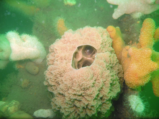 Fastsiddende svamp på Holmen- de fritsvømmende forsvandt i den dårlige sigt!