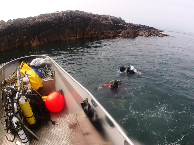 Vi fandt et lille smørhul ved spidsen af Kullen, hvor vi kunne ligge helt fredeligt og i læ for den lette søndenvind. Og der var næsten fri dykning, så rækkefølgen er ikke helt sikker, men alle kom i vandet igen. Og de fleste kunne selv finde tilbage…