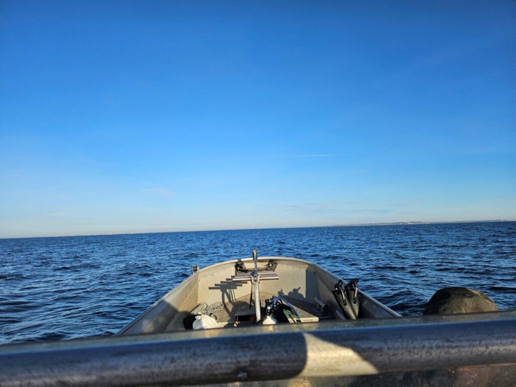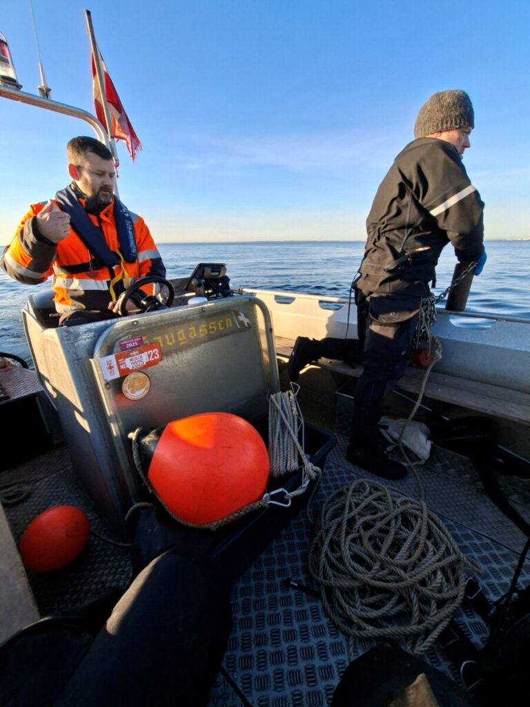 Turen over Sundet var relativt begivenhedsløs, det hjælper at være let lastet, og i læ af Hven gik det relativt hurtigt og vi havde noget der mindede om læ, da vi nåede frem til positionen, hvor vi gerne havde set dunken, der markerede vraget. Men ak, den var væk… Vi måtte gøre det som i gamle dage, smide lod og binde på – surt, for det koster en del tid og besvær og vi kan jo godt lide at gøre det lettest muligt.