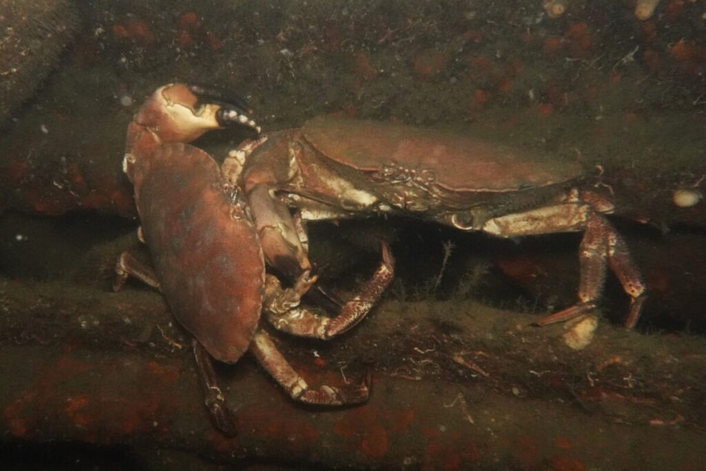 Der var vel en god håndfuld torsk rundt omkring og store krabber, men tiden går alligevel, vandtemperaturen var ganske behagelig, og liggende på deko (14min), syntes jeg at det havde været en god dag, indtil det gik op for mig at det var første dyk.