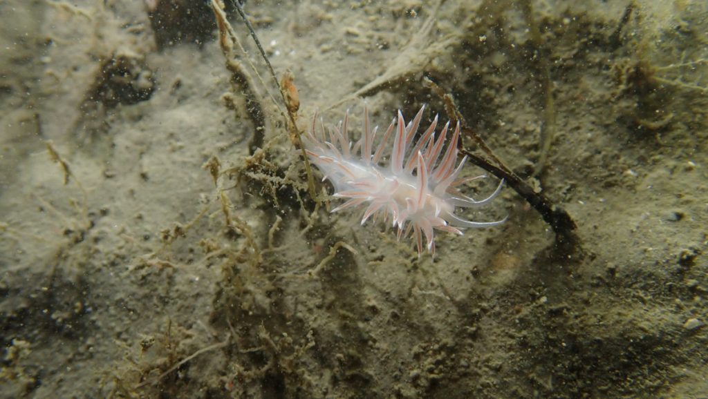 Ankommet blev loddet kastet, Kenneth samt undertegnet hoppede i og Kenneth bandt på. Her var sigten til gengæld rigtig fin (Øresund taget i betragtning) ca. 6-7 m og ca. 4 ved bunden, så super lækkert dyk og godt med liv på prammen.