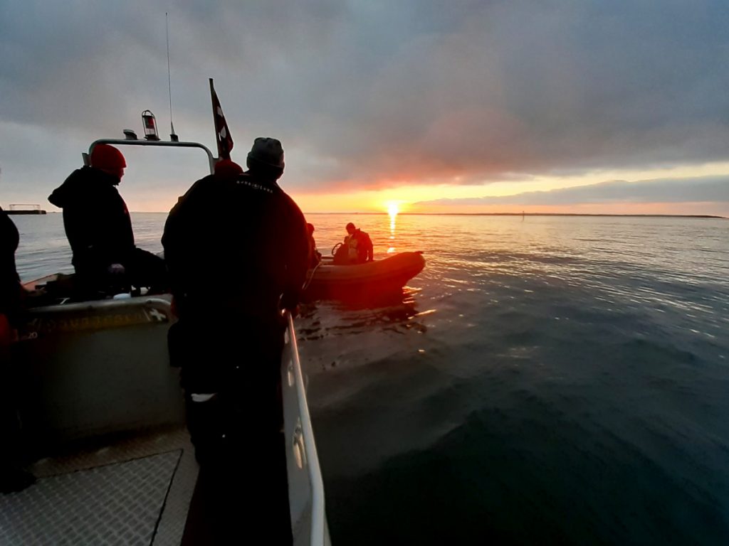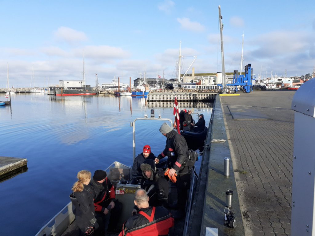 Inden afgang skulle der lige fyldes lidt luft for en uheldig jæger der skulle bruge søndagen på at bjærge sin båd mv. fra bunden af Roskilde Fjord. Han var vist glad for at kunne få fat i luft en søndag morgen – spændende om det lykkedes ham at få bjærget sine ting..