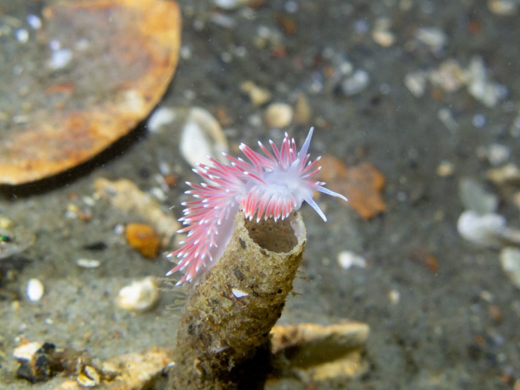 Efter lidt tid på bunden forsvandt finnerne og sigten blev langsomt bedre dog uden at være prangende – det gjorde det nemmere at se den store mængde af især langer der gemte sig under pladerne. Derudover var der pænt med andet dyreliv – blandt andet en del fine taskerkrabber – hvor et par af dem kom med hjem. Et par snegle fik jeg også fundet – og foreviget. Jeg fik brugt en times tid som aftalt og skyndte mig tilbage til bundtorvet i god tid inden Thomas bandt af.
