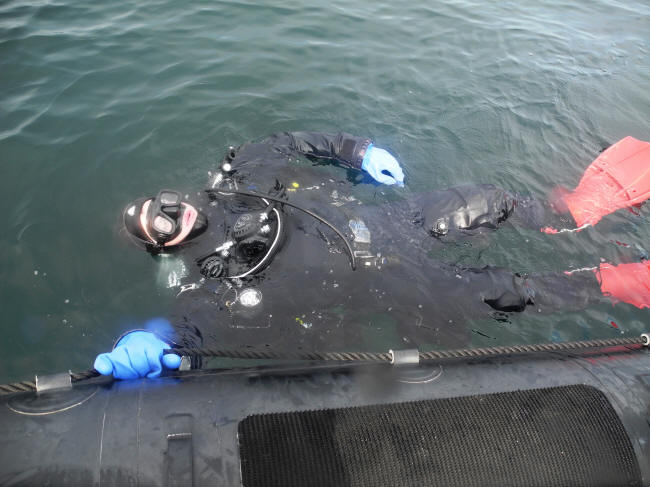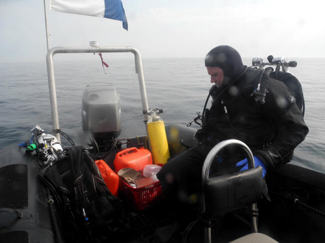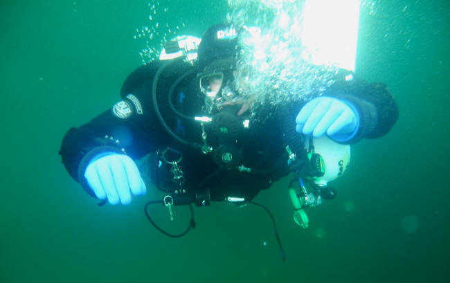 Der er var masser af liv, store taskekrabber og vi så endnu en stor havkat. Efter 47 min kom vi op igen. Dennis havde bundet af. Kim havde lagt kursen ind, så vi strøg til Anders Martin. Kim hoppede i og bandt på, det blev et kortere dyk for hans vedkomme han var blevet lidt våd.