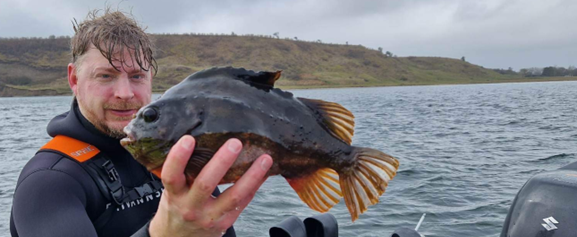 Tredje spot så lovende ud. her blev dagens størstedel af hummerne taget, selv den unge purk fik sin første hummer over mål, inkl. Den største stenbider på 38 cm. Lige indtil Jens mente han skulle overgå den med en på 40 cm.