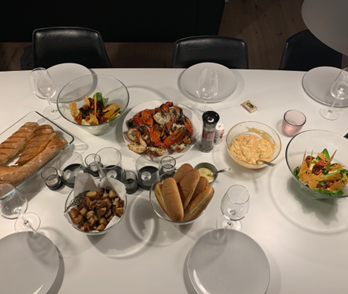 Mads og Jesper havde taget aftensmadstjansen som stod på lobster roll med diverse tilbehør.