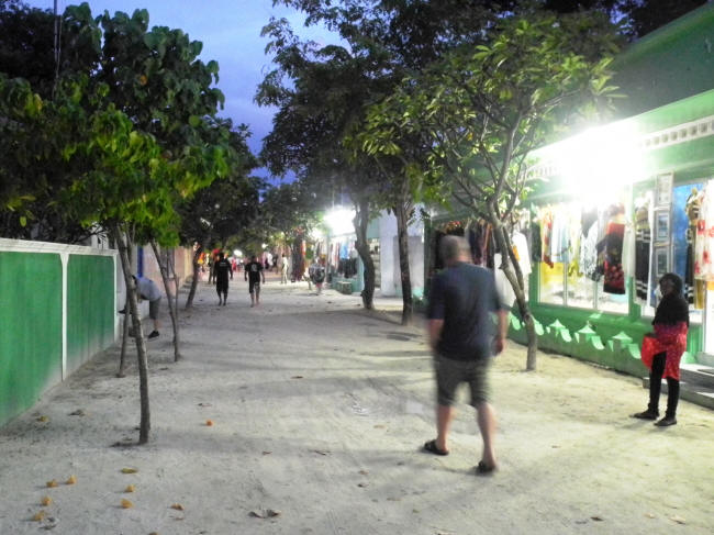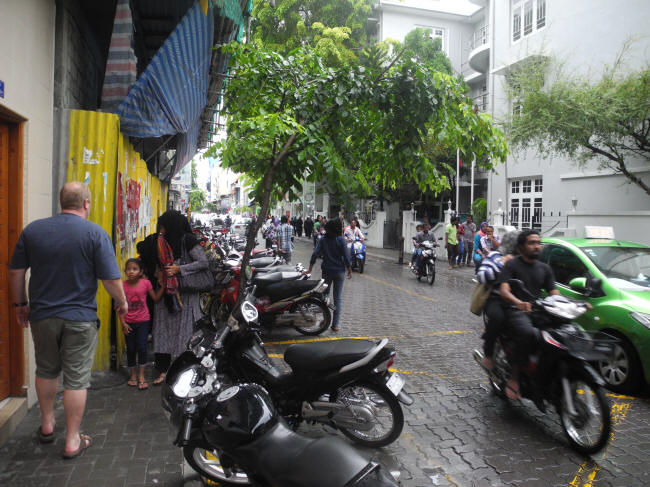 Vi havde hele eftermiddagen til at aflægge Male en genvisit. Da vi kom til byen, så det ud som om at Maldiverne allerede var ved at gå under, for gaderne var fyldt med vand efter de heftige regnskyl. Utroligt, at vandet ikke bare løber af, når havet er så tæt på.Male havde ikke forandret sig ret meget i løbet af det sidste år, i det mindste ikke, så vidt vi kunne se. Men de to timer gik hurtigt, så vi fik travlt med at komme tilbage til Dhonien.