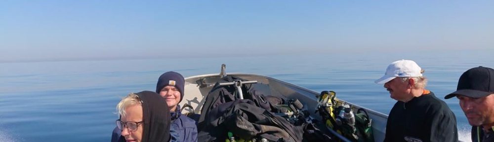Nå, men man må jo få det bedste ud af det, når man nu er der, så jeg gjorde fast højt på lønningen, så folk kunne finde tilbage. Herefter var det bare med at komme ned og kigge under pladerne om der skulle gemme sig en havkat eller to. Hvis de var der gemte de sig godt! Der var også her store taskekrabber og masser af glyser. Det var småt med torsk og vraget virkede bemærkelsesværdigt dødt i forhold til tidligere dyk på stedet. Det blev alligevel til en times tid, hvis man medregner tiden på tovet…