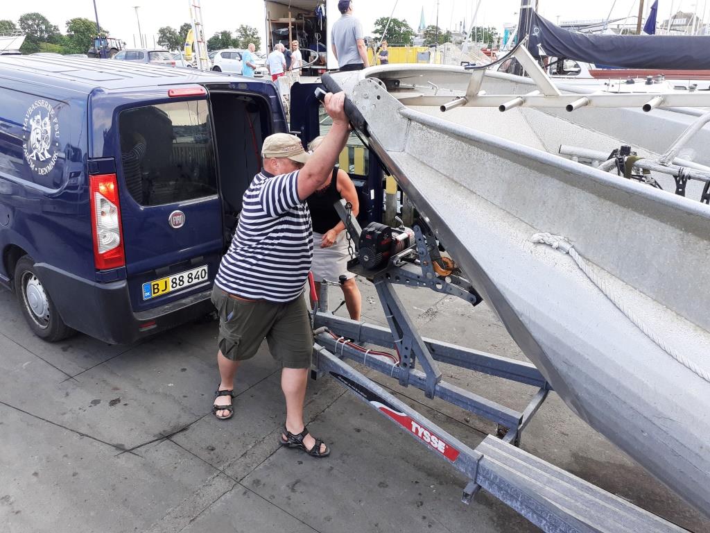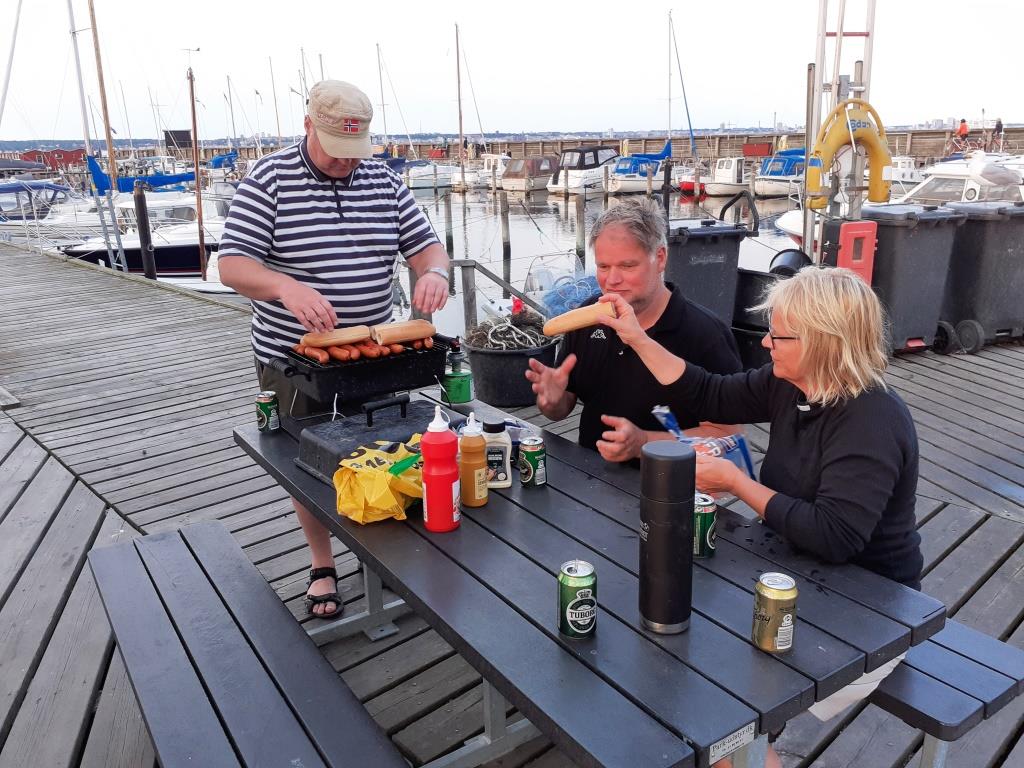 Der var nogen bølger, så vi rykkede grillfesten ind på land, og grillen var varm, da vi havde båden på traileren…