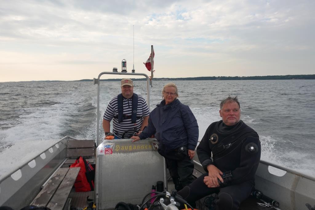 Trods en nogenlunde vejrudsigt var vi kun tre dykkere, der havde mod på tirsdagsdyk. Og så Jørgen, der lige var blevet vaccineret og, ubetænksomt grænsende til dumt, havde nævnt noget til konen om DANs anbefaling om at vente en uge efter stikket før dykning genoptages. Han kom med som badejern og bådfører.