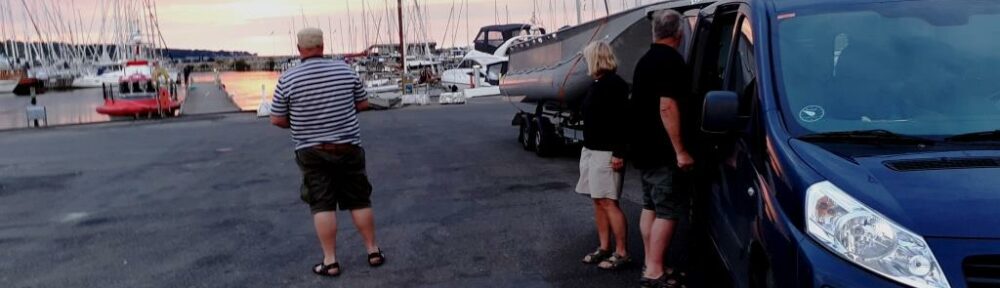 Der var nogen bølger, så vi rykkede grillfesten ind på land, og grillen var varm, da vi havde båden på traileren…