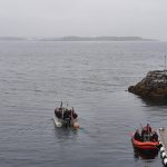 Jeg blev hentet på adressen, vi nåede den planlagte færge og efter et hurtigt tisse- og sandwichstop var vi fremme ved Släggö hvor første duk skulle foregå.