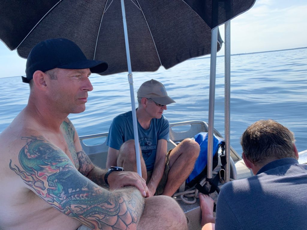 Vi var derfor nødt til at kontakte søredningstjenesten, så de kunne hjælpe os med at jump-starte båden igen. Det kostede os over en times ventetid på havet i den bagende eftermiddagssol. Heldigvis havde vi både taget ekstra drikkevarer og parasollen med, men sidstnævnte blev dog hurtigt ret lille, da fire voksne mænd forsøgte at være inde under den samtidig.