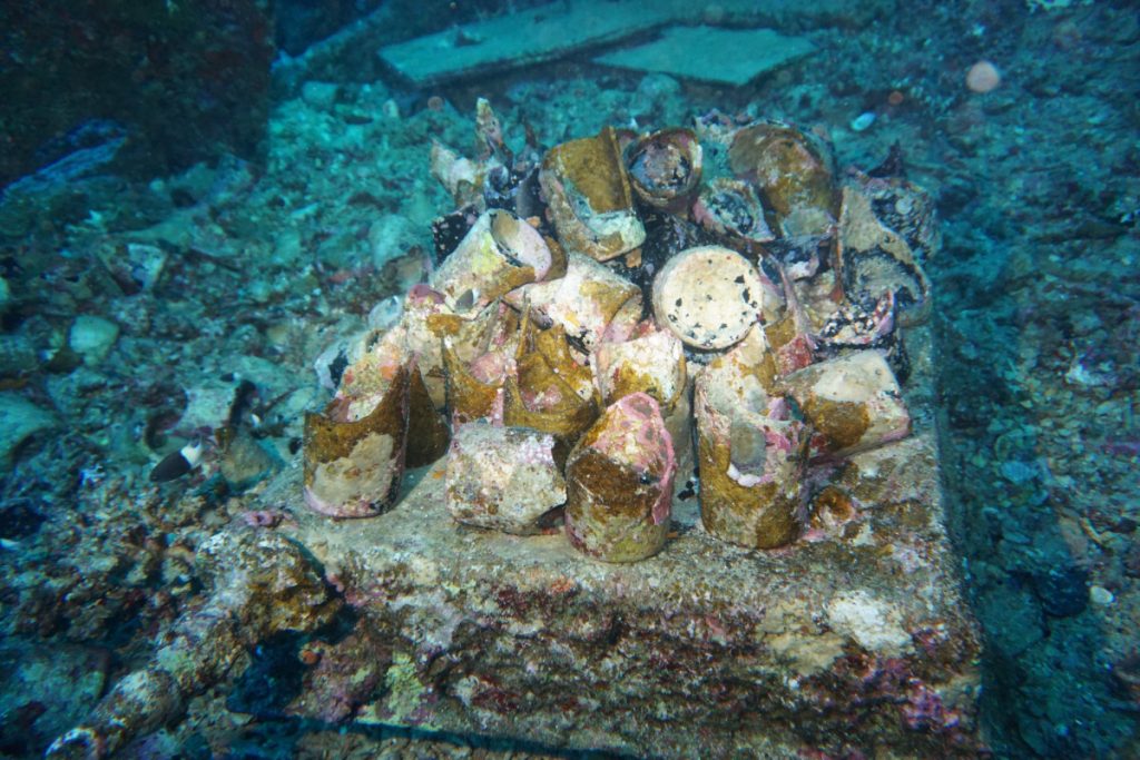 Selvom det var småt med dimser var der dog stadig lidt rester af det maritime liv. Kæder, kedler, kapstan, davider og sølle rester af lasten af gode vine.