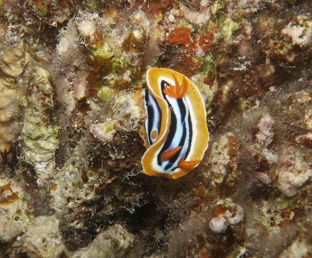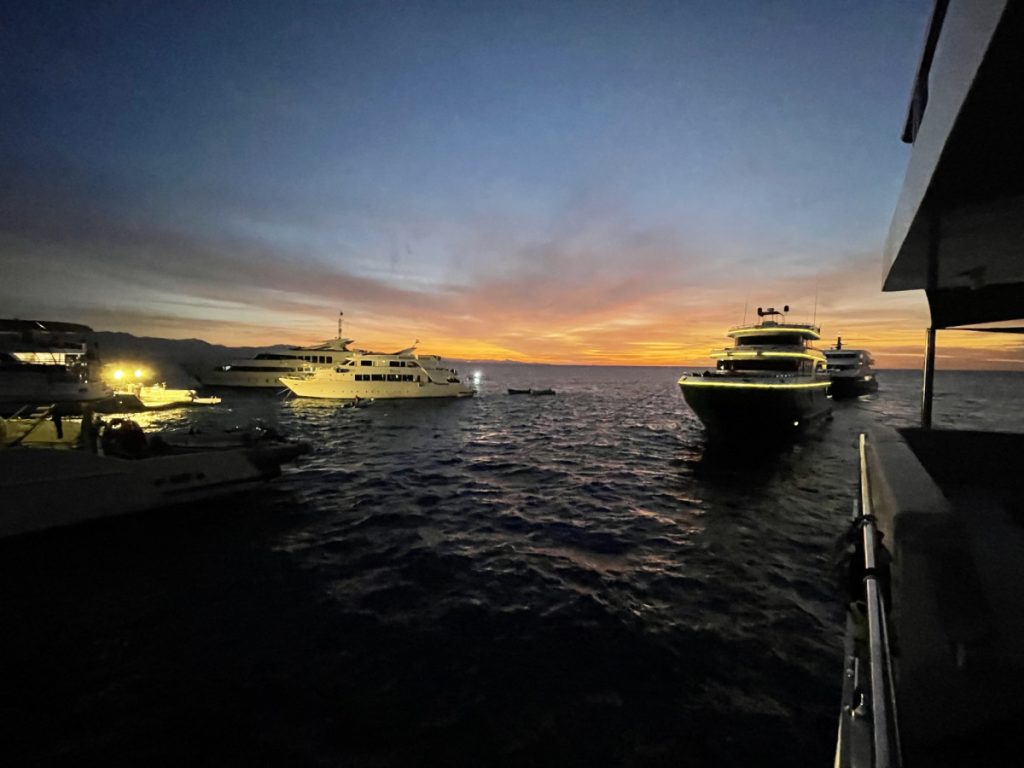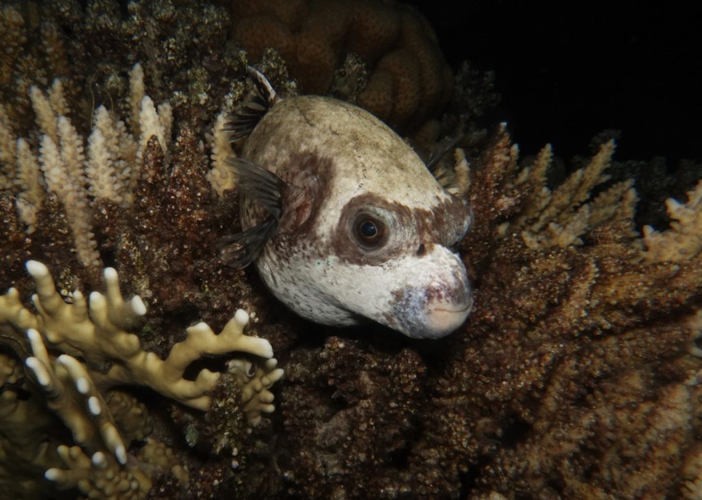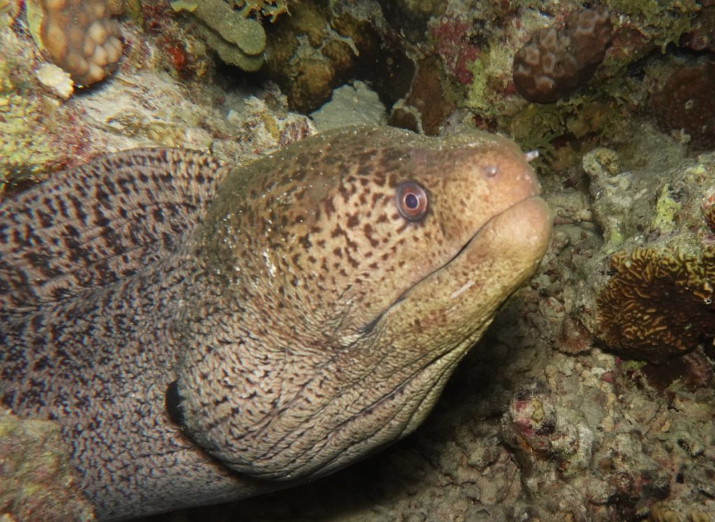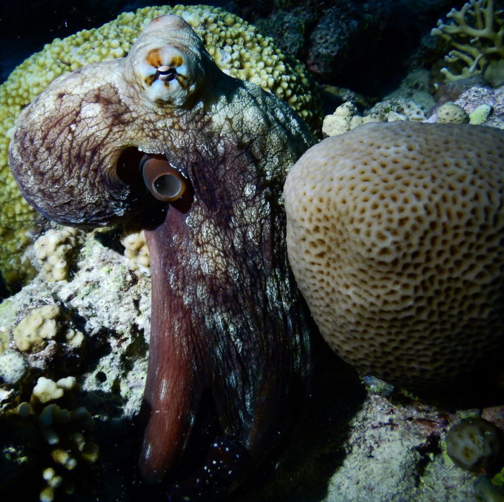 Vi kom dog i, og havde et fint natdyk med blæksprutter og muræner m.m., og hvis man gik tæt på revets top, oplevede man, at der skyllede koldt vand ind over, og vind og bølger var taget godt til. Vi lå dog fint i læ…