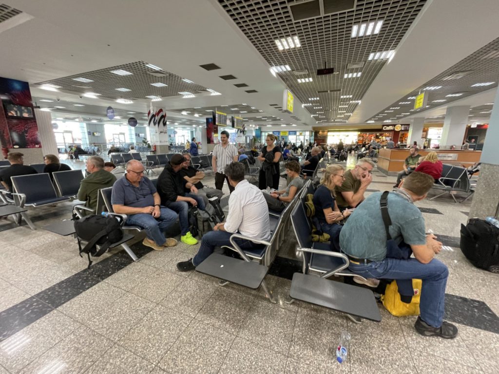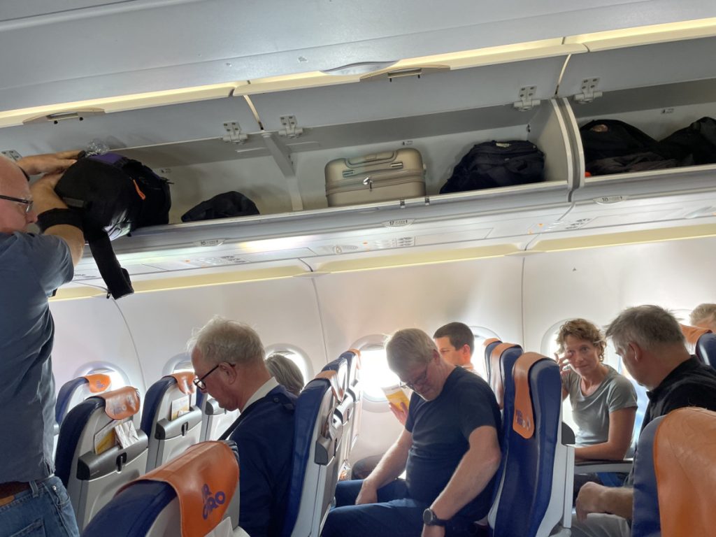 Da vi nåede lufthavnen var der en enkelt der manglede nogle Airpods, der lå til opladning, så hurtig retur efter dem og forfra i køen for den uheldige… Vi ventede i den ikke så spændende lufthavn og nogenlunde planmæssigt kom vi ombord i den trange flyver, hvor der var fyldt helt op.