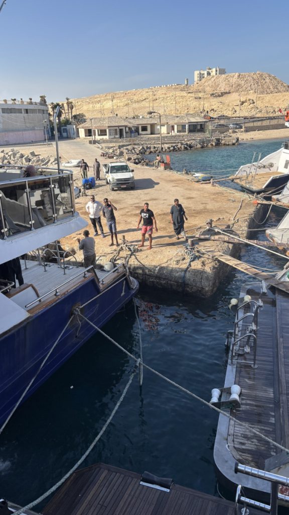 Turens sidste dyk for dem, der orkede – der var et par overspringere – skulle være på vraget af en ægyptisk patruljebåd/minestryger; El Mina, der ikke overlevede et besøg af israelske jagerfly. Vi kom til dykkerstedet, der nærmest er midt i havneindløbet, og efter noget der mest af alt mindede om en parallelparkering, kunne vi hoppe i havet og dykke på vraget, der ligger på siden med en bunddybde på ca. 30 m.