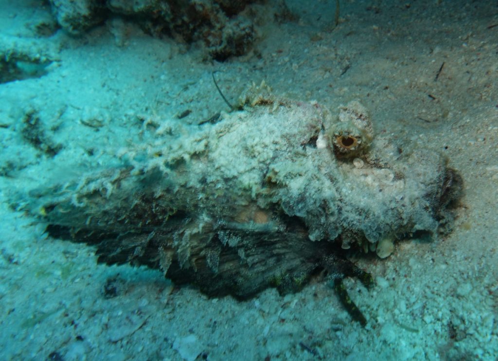 Da vraget var overset var der et flot rev at drive langs, og ret beset var revet noget mere interessant end Kingston. Det medførte at dykketiden blev lang, ikke længere end vi havde aftalt, men der var nogle lettere utålmodige gaster, der havde en gummibåd lige over os i den sidste halve time af dykket. Der var utroligt meget liv på revet, bl.a. en krokodillefisk og vi havde ikke travlt…