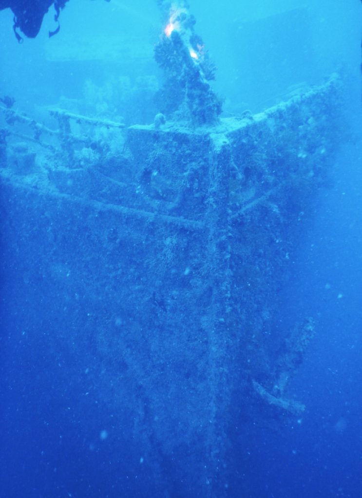 Da dekometeret begyndte at trænge sig på for alvor, rykkede vi ind på vraget, hvor vi kunne beundre de mange fortøjningtrosser, der var på ethvert fremspring på vraget. Den sidste del af dykket blev brugt oppe mellem de mange ”Bat-fish”, der hyggede sig oppe i den moderate strøm.