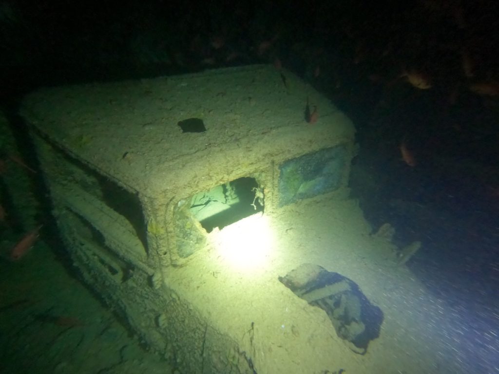 Vraget lignede sig selv fra tidligere, men tidens tand og de mange besøgende har ikke gjort noget godt, hverken for vraget eller de køretøjer, der var i skibet. Der var en del liv inde i vraget, og de fisk der var der, de var helt uimponerede af dykkere og skulle næsten flyttes, for at vi kunne komme forbi.