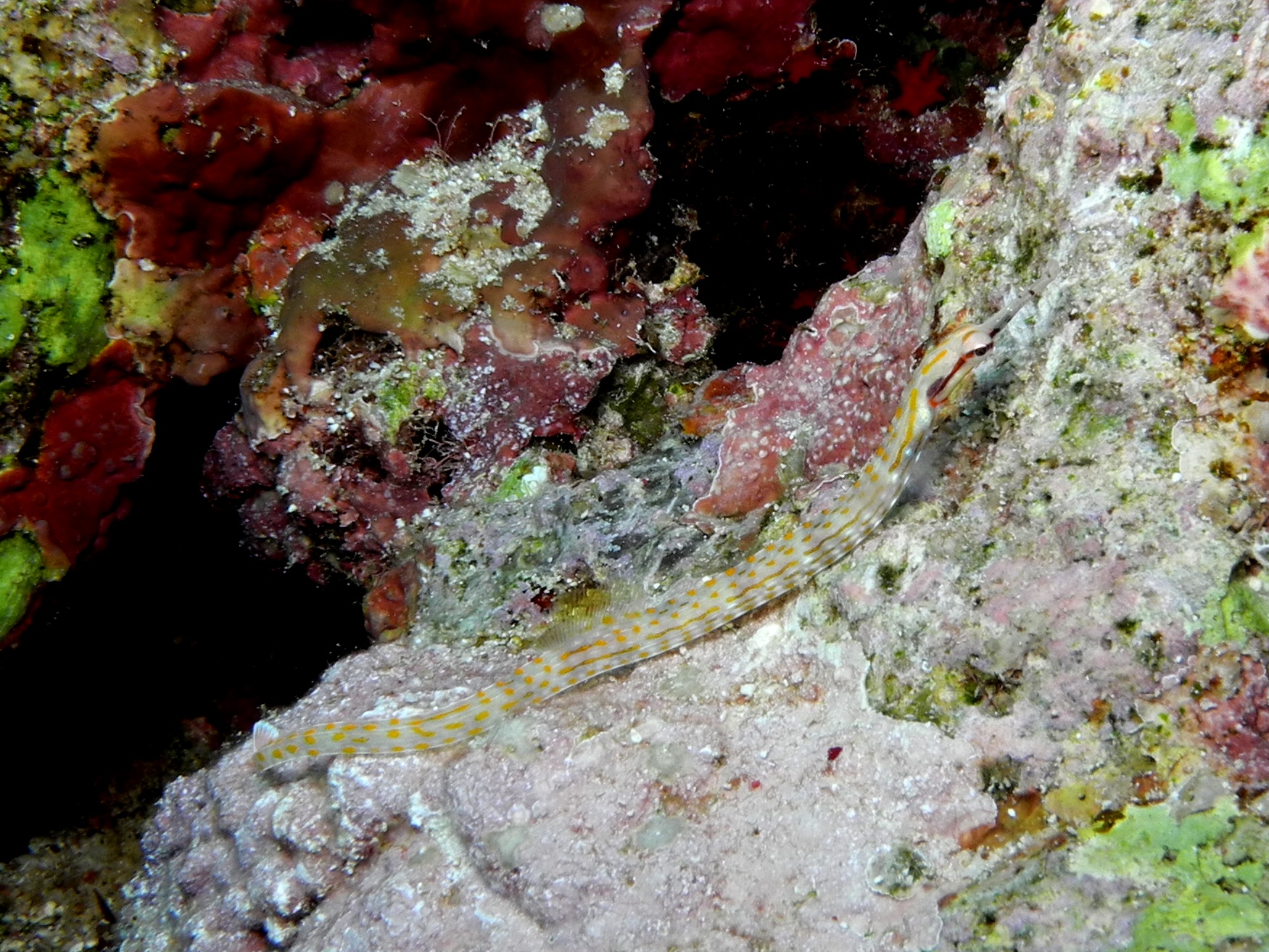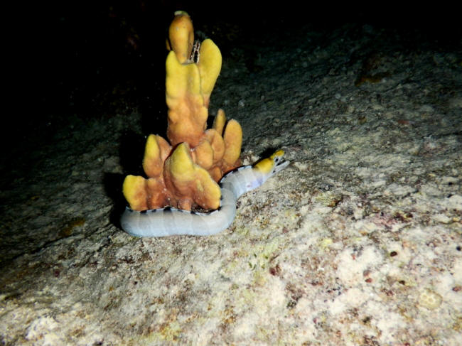 Vi sejlede videre mod stedet for natdykket, Sataya South. Der var irriterende mange dragefisk, der drillede hver eneste gang man skulle se lidt nærmere på noget. Af ekstraordinære ting var en gulhovedet muræne og blæksprutte der sprøjtede blæk. Der var også en spotted snake eel.