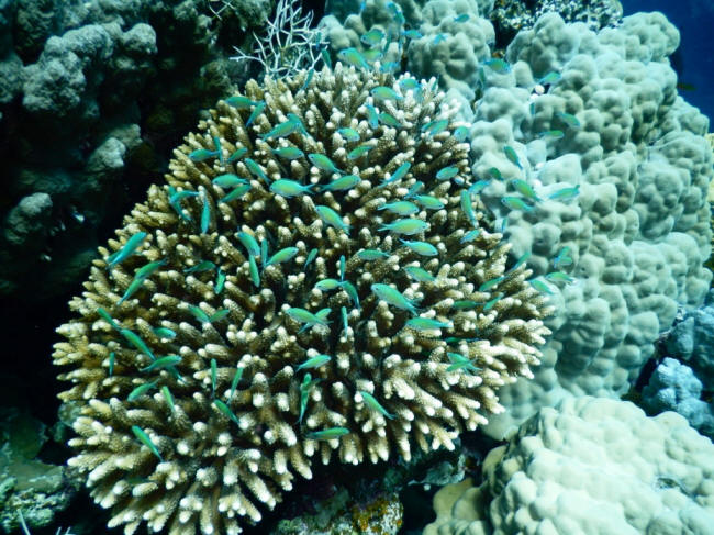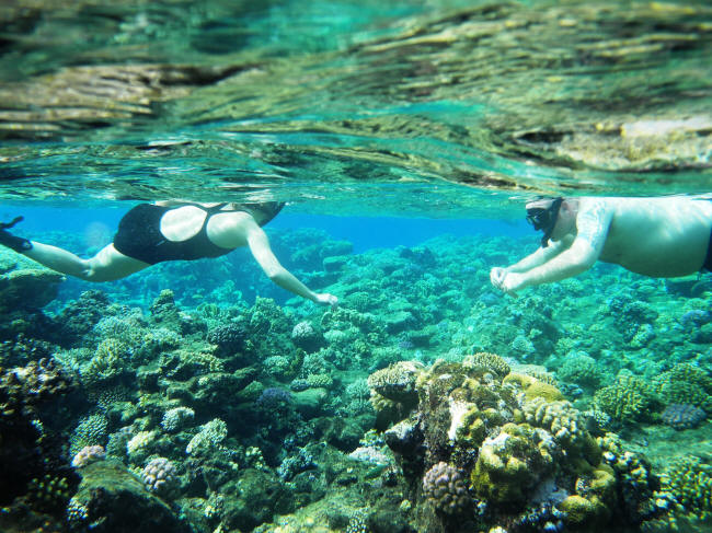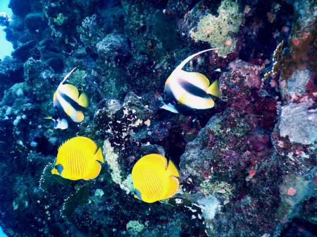 Mellem dykkene blev der snorklet lidt på kanten af væggene og lidt ind over, hvor det var muligt. Mange kirurgfisk inde over revet, hvor de græssede alger og enkelte muræner sad også i revets øverste del.
