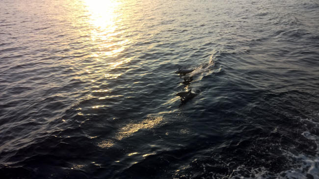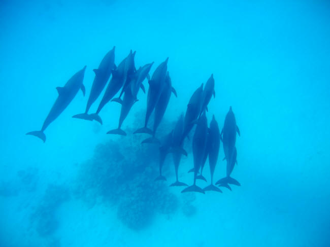 Herefter gik det videre mod syd, men der var lige en pause undervejs, hvor vi skulle snorkle med de stedfaste delfiner ved Sattaya-“Dolphinhouse”. Kasper var mest utålmodig og troede vi bare kunne hoppe i fra båden, så han fik lige et minut med rigtig nærkontakt, inden han blev kaldt op. Vi var naturligvis ikke alene, der var en del andre, hvoraf mange var iført redningsvest og badevinger – og masker med snorklen i ned maskens rum. Der herskede en del kaos, hvor der hele tiden blev råbt, at gruppen skulle holdes samlet, men det var de andre – heldigvis, vi kunne gøre hvad der var mest hensigtsmæssigt, og havde en god halv time med de skønne dyr.