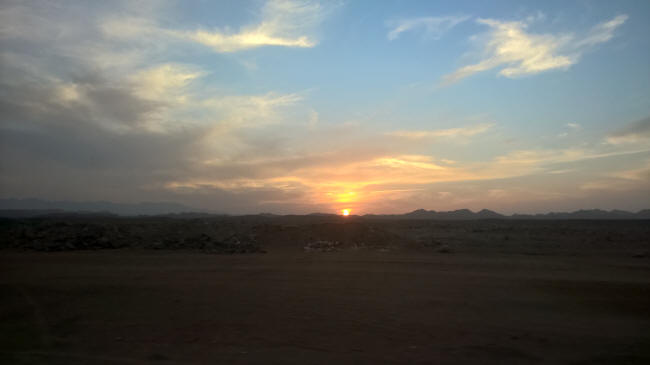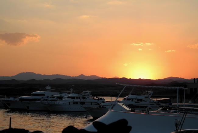 I flyveren fik vi en forfriskning, og så var ferien begyndt. Flyveturen var på fem timer, og så var vi i 35 graders varme. Vi skulle have visum og det gik smertefrit med en dygtig “Handler” fra Sea Serpent. Og så lige bagagen, hvor Menno fik lidt mere sved på panden, end os andre, hans bagage var et kvarter forsinket i forhold til resten af gruppen. Men den var heldigvis med, så bagagekvitteringen fik han alligevel ikke brug for. Efter en halv times ventetid skulle vi med bussen, den længe imødesete tur, hvor man sidder med hjertet i halsen til bussen holder stille ved båden. Denne tur adskilte sig ikke fra tidligere, chauføreren kørte forbi en fætter efter forplejning, kørte ualmindeligt groft uforsvarligt, selv efter ægyptiske forhold, og kørte så en længere strækning i den modsatt evejbane på en hovedvej, for at plante os hos en anden fætter, der tilfældigvis havde en café, hvor vi til lettere overpriser kunne købe en sodavand til resten af turen. Efter pausen gik det sydpå af bittesmå snørklede veje gennem usle landsbyer, hvor den primære afgrøde var plasticaffald, krydret med fritgående dromedarer, der gumlede på visne grene, men til sidst, og stadigvæk i live, nåede vi Port Ghalib, hvor der, af hensyn til turisterne, var mindre affald på gaderne.