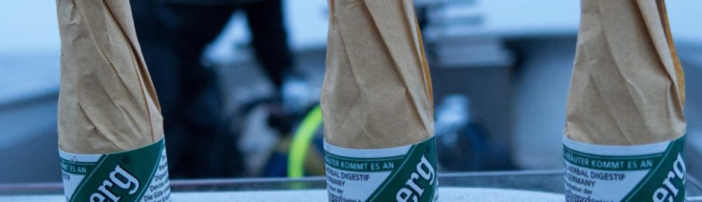 Op i kulden, der igen fik fat i kinder, pande og i resten af kroppen for den sags skyld. I båden var baren åben og Kim ventede med 3 kolde Underberg og Steffen med sit strobelight, som han mente det var hensigtsmæssigt, at tage med op, Med andre ord, så var det hverken støv, kompas eller påbinding, der var noget galt med.