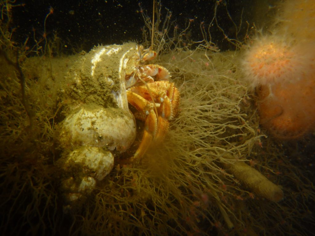 Sigten var desværre ikke specielt god, jeg havde heldigvis mit kamera med så kunne fedte lidt rundt langs skibssiden og tage billeder af diverse småkravl. Endvidere havde jeg købt en brugt lygte, der skulle prøves af, så bundtiden fik hurtig ben at gå på. Alt i alt et fint dyk.