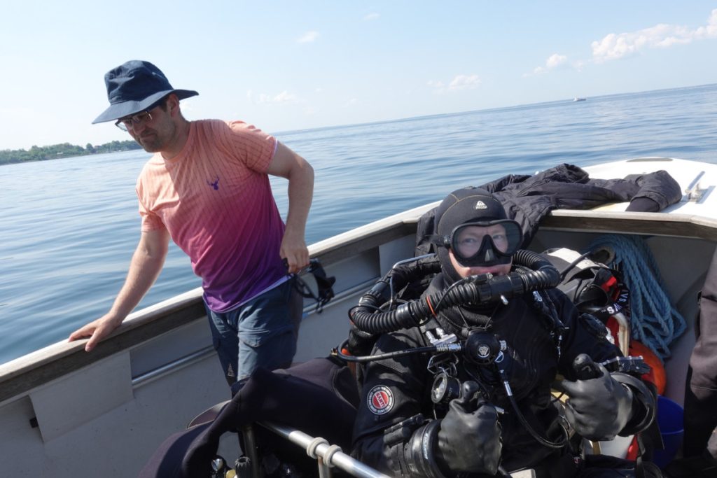 Bjørn var den første der var klar og hoppede i. Det er nu praktisk, at der allerede er gjort fast i vraget, det gav os mulighed for at holde øje med Bjørn, mens han gik ned!