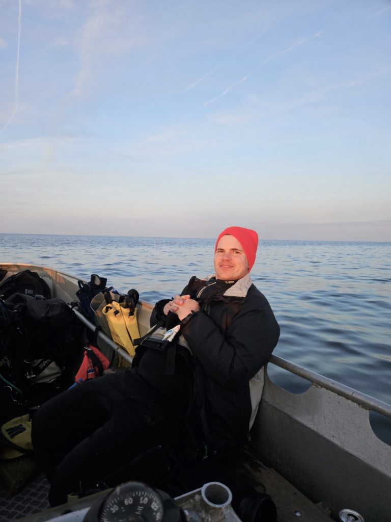 Efter lidt mere end en times tid var der blevet stille på vraget og jeg kunne se Jørgen havde taget markeringen med op – så jeg fik bundet af vraget så jeg ikke skulle høre for meget brok over længden af dykket.