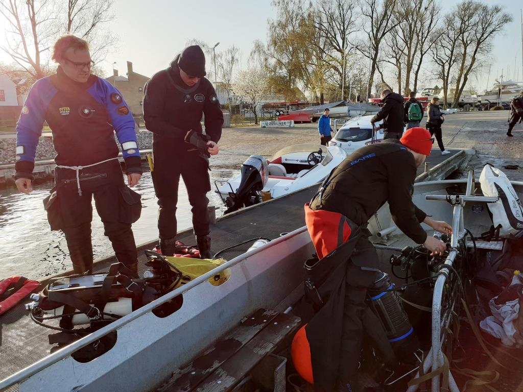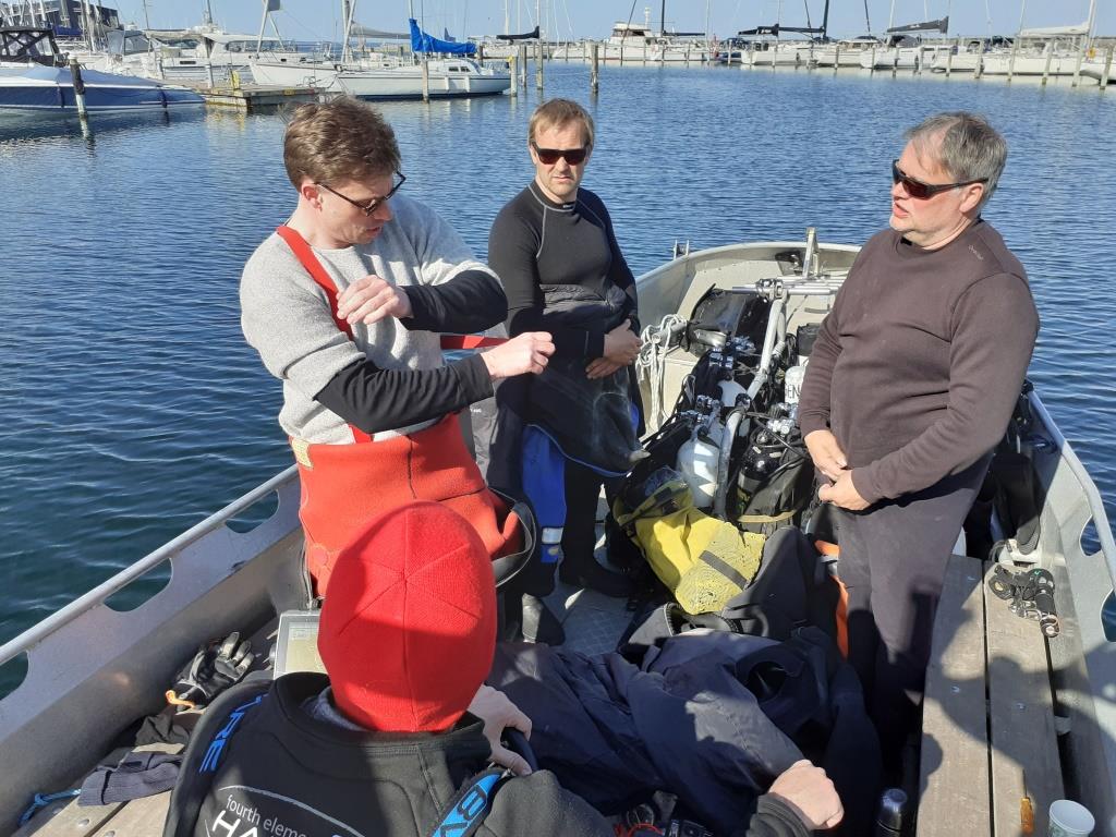 Rune fik fornøjelsen af at gøre fast og flåddet lå i bølgerne efter fire minutter, så loddet har ikke været langt fra pullerten. Herefter var det bare at få gjort båden fast og smidt henholdsvis Bjørn og Steffen i vandet og så ellers vente på at folk kom tilbage i båden.