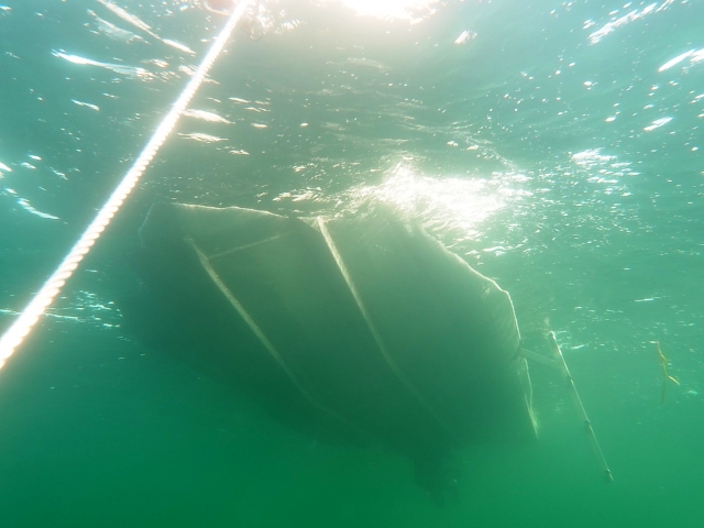 Rune var oppe som den første, hvilket jo passede meget godt med rækkefølgen. Han kunne fortælle om begrænset sigt, men det der der jo ikke meget nyt i, når man er på Robert. I med Juhl, mens jeg gjorde klar til at lukke festen og kort efter røg jeg overbord. Ingen strøm men ukomfortabel sø, klasrt vand i overfladen men et meget flimrende springlag på 14-16 meter, noget ”mindre defineret” end det plejer at være.