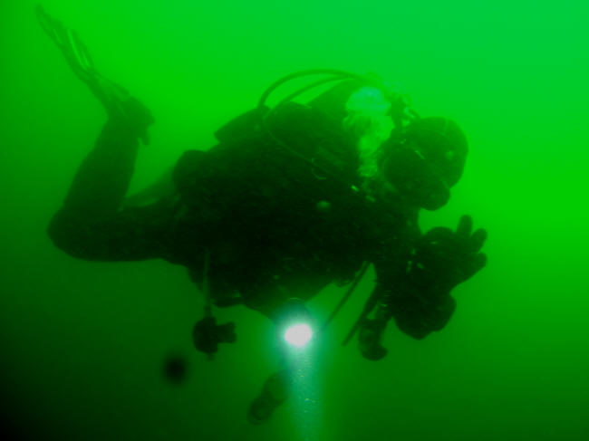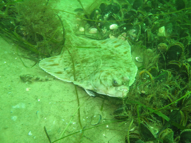 Ude i vandet var der nu alligevel fin plads, alt var ikke hvirvlet op. Under dykket blev der set en del liv, fladfisk, ål, rejer.